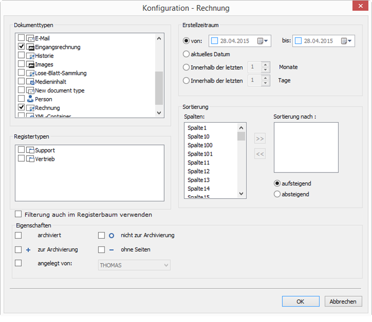 Si vous activez un filtre dans la Gestion des filtres, il est automatiquement appliqué comme filtre par défaut à chaque ouverture d'une fenêtre de classeur. À l'ouverture de la fenêtre de classeur, seuls les documents correspondant aux critères de filtre par défaut s'affichent. Un autre filtre d'affichage peut ensuite être défini manuellement. Si aucun filtre par défaut n'est activé dans la gestion des filtres, le filtre défini manuellement dans la fenêtre de classeur s'appliquera à nouveau lors de la prochaine ouverture de la fenêtre.