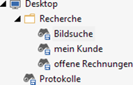 La requête enregistrée est reprise dans la recherche d'objet d'enaio® client et affichée dans le volet Bureau.