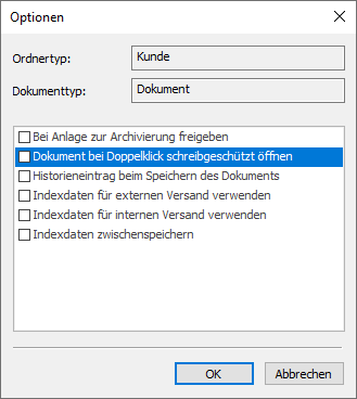 Pour chaque type de document, vous pouvez définir ici si les données d'indexation récentes sont mises en cache et automatiquement insérées dans un nouveau masque d'indexation, et si les documents de ce type doivent être approuvés pour l'archivage.